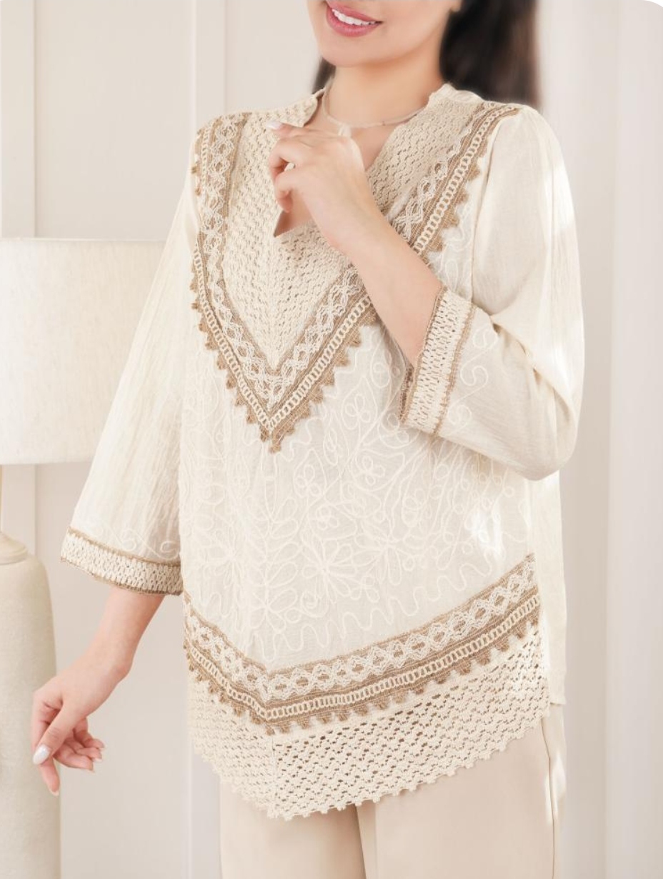 شومیز هندی خامه دوزی جنس نخ+خامه دوزی مناسب میهمانی، دورهمی و روزمره مناسب فصول بهار و تابستان قد لباس ۶۲ سانتی متر آستین سه ربع